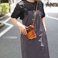 パーニュ携帯ショルダー メッシュポケット茶 ナイロン紐 黄xオレンジ