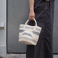 サイザルバッグ共手9インチ 伝統柄やまなみ 生成xグレー