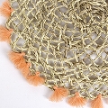 タザまんまる透かし編み ランチョンマット タッセル付き サーモンピンク 24SS一点物 @4500→3600