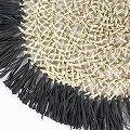 タザまんまる透かし編み ランチョンマット ラフィアフリンジ付き グレー 24SS一点物 @6500→5200