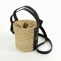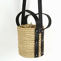 ラフィア丸底 2Wayショルダーバッグ 巾着付 黒革 24SS一点物 @12500→10000