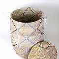 セネガル 蓋付きぷっくりカゴ 縦ジグザグ柄 白マルチ 24SS一点物 @20000→16000
