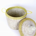 セネガル 蓋付きぷっくりカゴ 上部から― 白レモン 24SS一点物 @14000→11200