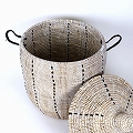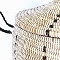 セネガル 蓋付きぷっくりカゴ 縦ドット柄 白黒 24SS一点物 @16500→13200