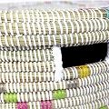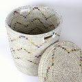 セネガル 蓋付き筒型カゴ 段々横ジグザグ柄 白マルチ 24SS一点物 @19000→15200