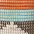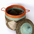 セネガル 蓋付きぷっくりカゴ ストライプダイヤ柄 白ターコ濃オレンジ黒 24SS一点物 @14000→11200