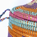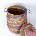 セネガル 蓋付きぷっくりカゴ 全面階段柄 紫ターコ濃オレンジクリームピンク 24SS一点物 @17000→13600