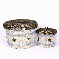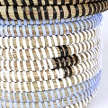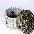 セネガル 蓋付き筒カゴ ストライプ十字架柄 黒ペールブルー白 小 24SS一点物 @4000→3200
