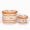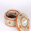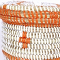 セネガル 蓋付き筒カゴ ストライプ十字架柄 白オレンジ 小 24SS一点物 @4000→3200
