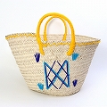 チュニジア刺繍バスケット 丸底 ハンドル 黄