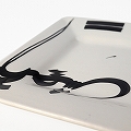 スラマ陶器 手描き四角平皿 アラビア文字 黒