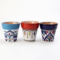 スラマ陶器 手描ガーデンポット ミニ 水色