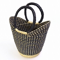ニャリガバスケット ニケフォルム チェック柄 大 ナチュラル黒 黒革ハンドル