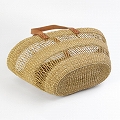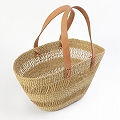 ニャリガバスケット 楕円底 2本透かし 平革ハンドル革留茶