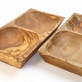 オリーブ木 四角トレイ 二連