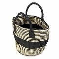 サイザルバッグ8インチ 細ボーダー 黒x生成