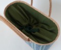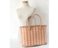 プラスチック砂糖シートかごバッグ 革ハンドル 内アラボラ サックス