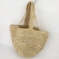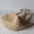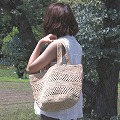 ラフィアかぎ編みトートバッグ バケツ型 チェッカーアジュレ ナチュラル