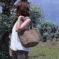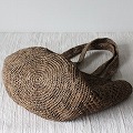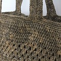 ラフィアかぎ編みトートバッグ バケツ型 チェッカーアジュレ グレー